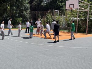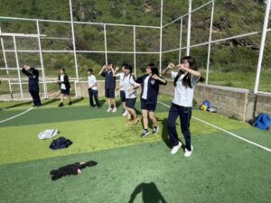 金曜日の朝礼では、体育の先生方が考案したオリジナルのエアロビクスを全校生徒で実施しました。普段耳にしない音楽に合わせた振り付けに、生徒たちは楽しそうに取り組み、会場は笑顔に包まれました。雨季にあたる時期ではありますが、この日は快晴で日差しも強く、朝から心地よい汗を流すことができました。