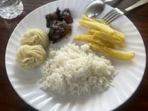昼食時には、校長先生のご厚意でブータン名物「モモ」をいただきました。日本の餃子に似た料理で、初めて味わう美味しさに感動し、おかわりをする生徒もいました。マカロニやフライドポテトなども用意していただき、大満足の昼食となりました。