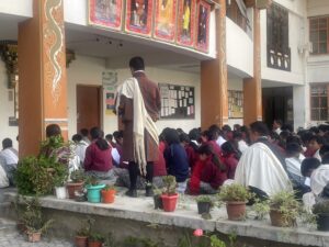 ブータン留学も折り返しを迎えました。休日明けの本日は、午前中に通常通り授業を受けました。授業の中では、クラスメイトとともにゾンカ語で自分の名前を書く練習をするなど、言語や文化に触れる貴重な体験を積んでいます。昼食の時間には、Pelkhil School の友人が食堂にカップケーキを届けてくれる一幕もあり、生徒たちはブータンでの学校生活にますます馴染んでいる様子が見られました。