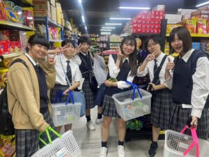 放課後には、学校の方々に案内していただき、学校近くのスーパーを訪れました。授業後の疲れも見られましたが、よい気分転換となったようです。