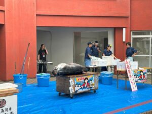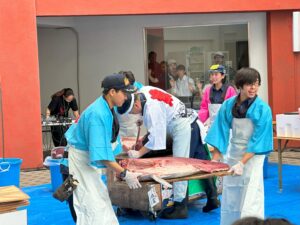 2日目は、10時30分より、スペシャルイベントとしてキタニ水産の方をお迎えし、マグロの解体ショーを実施しました。
