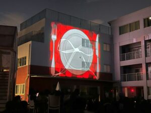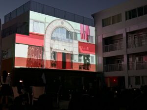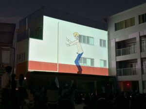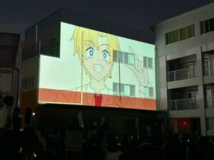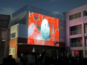 記念祭終了後は、本校と高大連携協定を締結している宝塚大学とメディアアート表現コース生によるプロジェクションマッピングを行いました。