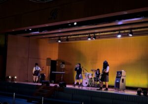白鵬アリーナで実施された軽音楽部によるバンド演奏ではコールやクラップをしたり、サイリウムを振ったりする観客の姿も見られ、とても盛り上がっていました。