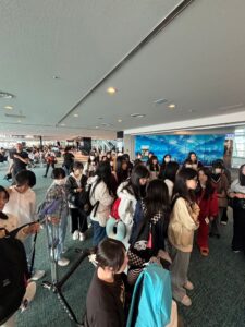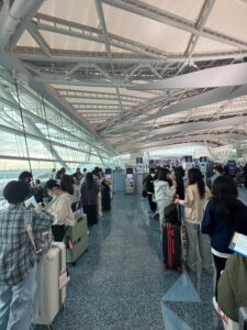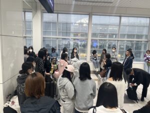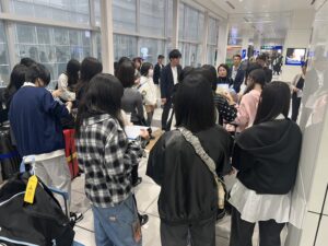 羽田空港に全員集合した生徒たちは、これからの修学旅行に楽しそうな様子でした。
