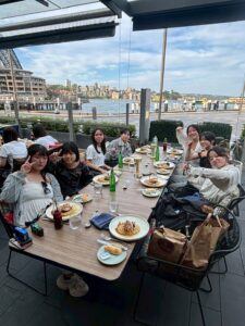 夕食は全員で海沿いのレストランに集まり、心地よい天候の中、シドニーでの最後の食事を楽しみました。美しい景色とともに、旅の思い出を語り合う貴重な時間となりました。