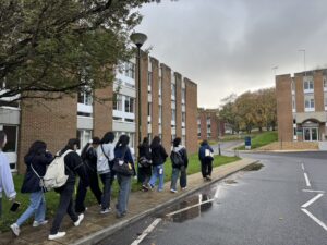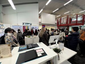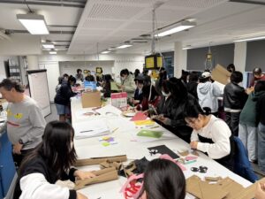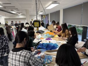 生徒達は、校舎見学で興味深そうに作品や機材を見たり、ワークショップで皆が楽しみながら制作したりしていました。