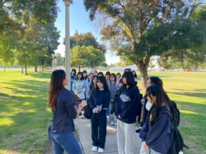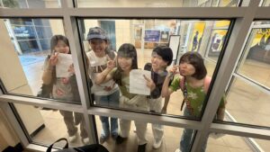 緊張しながらも、自分たちの力で学生に話しかけ、英語でのコミュニケーションのおもしろさを学びました。ひとつひとつ、チャレンジをし乗り越えて、充実した研修にすることを全員で確認しました。