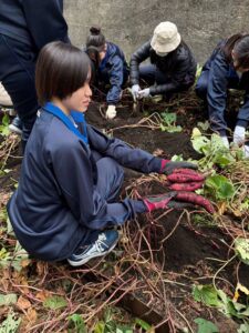 今年は小ぶりなさつまいもが多かったものの、収穫の喜びを感じながら、時間の許す限り楽しんで活動していました。生徒たちにとって、自然と向き合い、食材の大切さを学ぶ貴重な体験となりました。