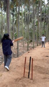 食後は、自然の中でクリケットやお絵かきを楽しみ、伝統的なお釜で作られたチャイを味わいました。