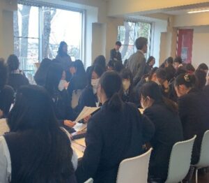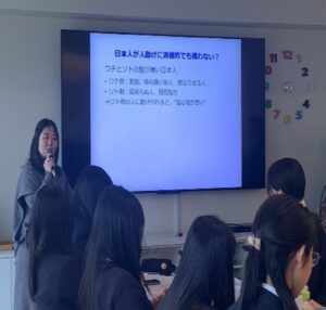 1月28日、グローバルコース1・2年生の「国際教養」の授業にて明治学院大学国際学部の教授をお招きし、国際経済学をテーマに講義を実施していただきました。大学紹介ではすでに大学訪問をしている生徒もおり、学部の違いや実際の受験に関するアドバイスをしていただき、進路について真剣に考える姿が見られました。講義では、「日本人は不親切な国民か?」をテーマに講義をいただきました。日本人は不親切であるというデータから、様々な観点から自分たちなりの考えを出す姿が見られました。